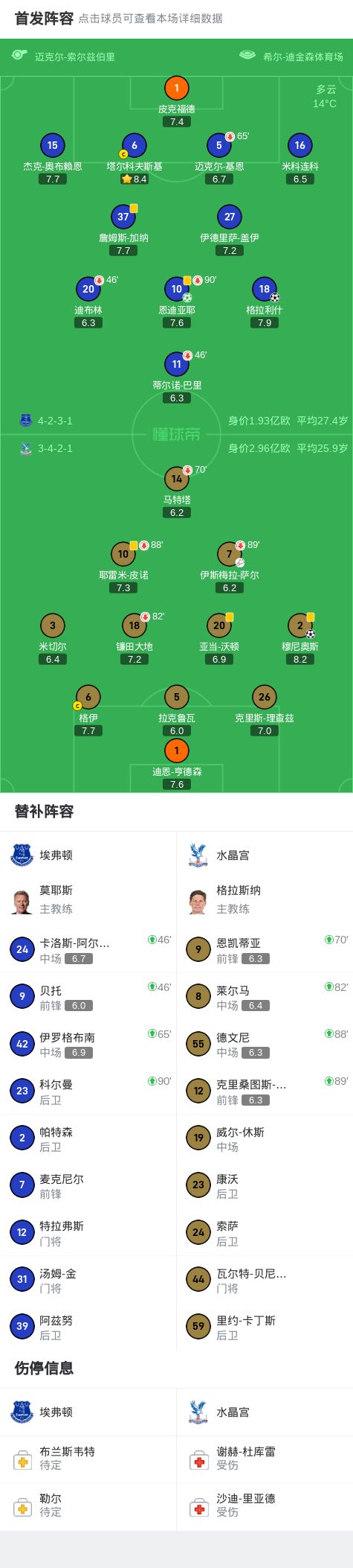 埃弗顿2-1逆转送水晶宫赛季首败,格拉利什补时绝杀