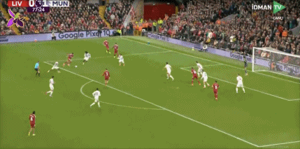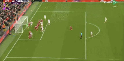 第78分钟,利物浦禁区内混战,维尔茨直塞,基耶萨禁区左侧横传,加克波门前推射入网,1-1!利物浦扳平。