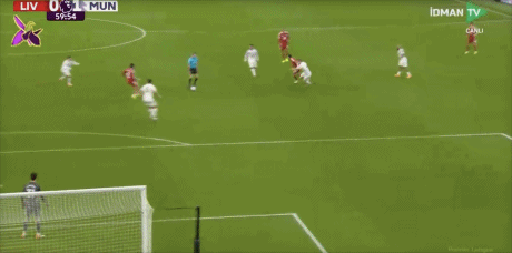 第50分钟,萨拉赫传中,加克波禁区左侧停球,右脚爆射击中立柱弹出!