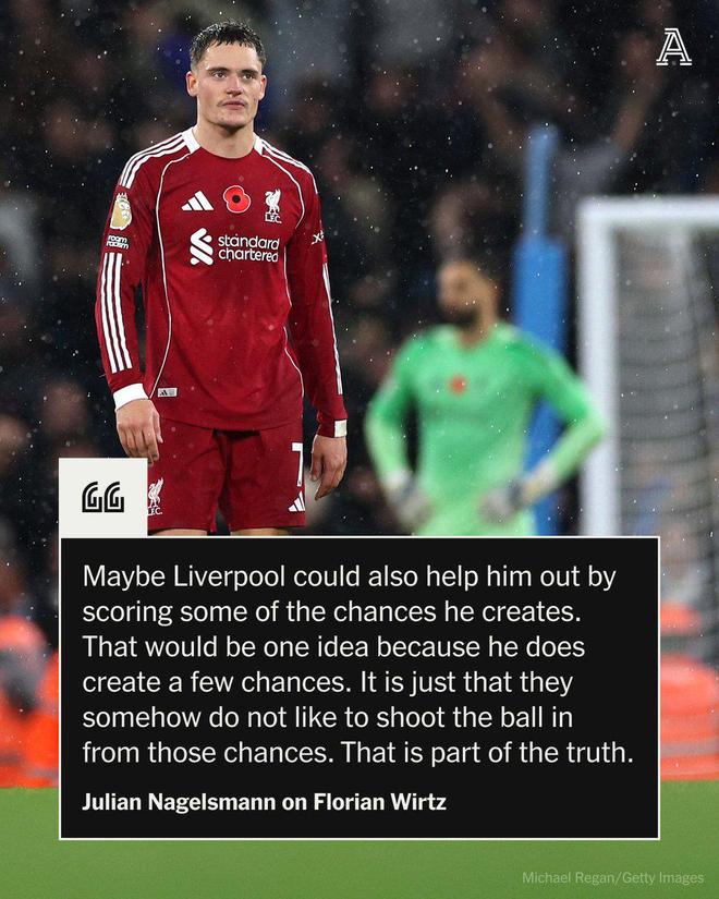 纳格尔斯曼承认维尔茨需要“更多时间”来适应新环境,但他坚称,利物浦的不稳定以及他未能把握住自己创造的机会,导致了这位22岁的球员在斯洛特的球队中开局不利。